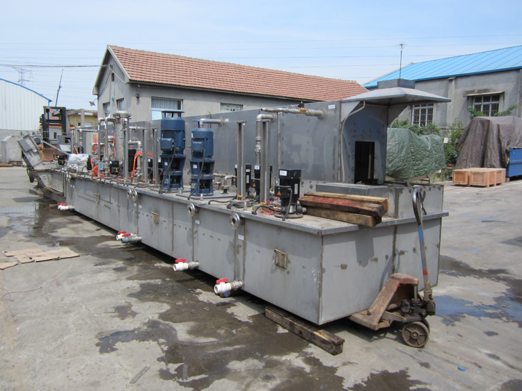 醫(yī)用藥液鋁瓶清洗機說明: 醫(yī)用藥液鋁瓶清洗機是針對醫(yī)用藥液周轉鋁瓶專業(yè)制作的專用清洗機,醫(yī)用藥液鋁瓶在制作完成后,需要對內(nèi)外表面進行拋光氧化處理等,在拋光氧化之前需要把鋁瓶表面的雜質處理掉,本設備是根據(jù)鋁瓶的形狀專業(yè)制作的,鋁瓶的固定工裝可以根據(jù)瓶口的大小進行調整,整臺設備采用不銹鋼制作,含酸洗、堿洗、水洗等多道工序,用PLC全面自動控制,初級清洗還配有排屑、過濾、除油、加溫等輔助裝置。